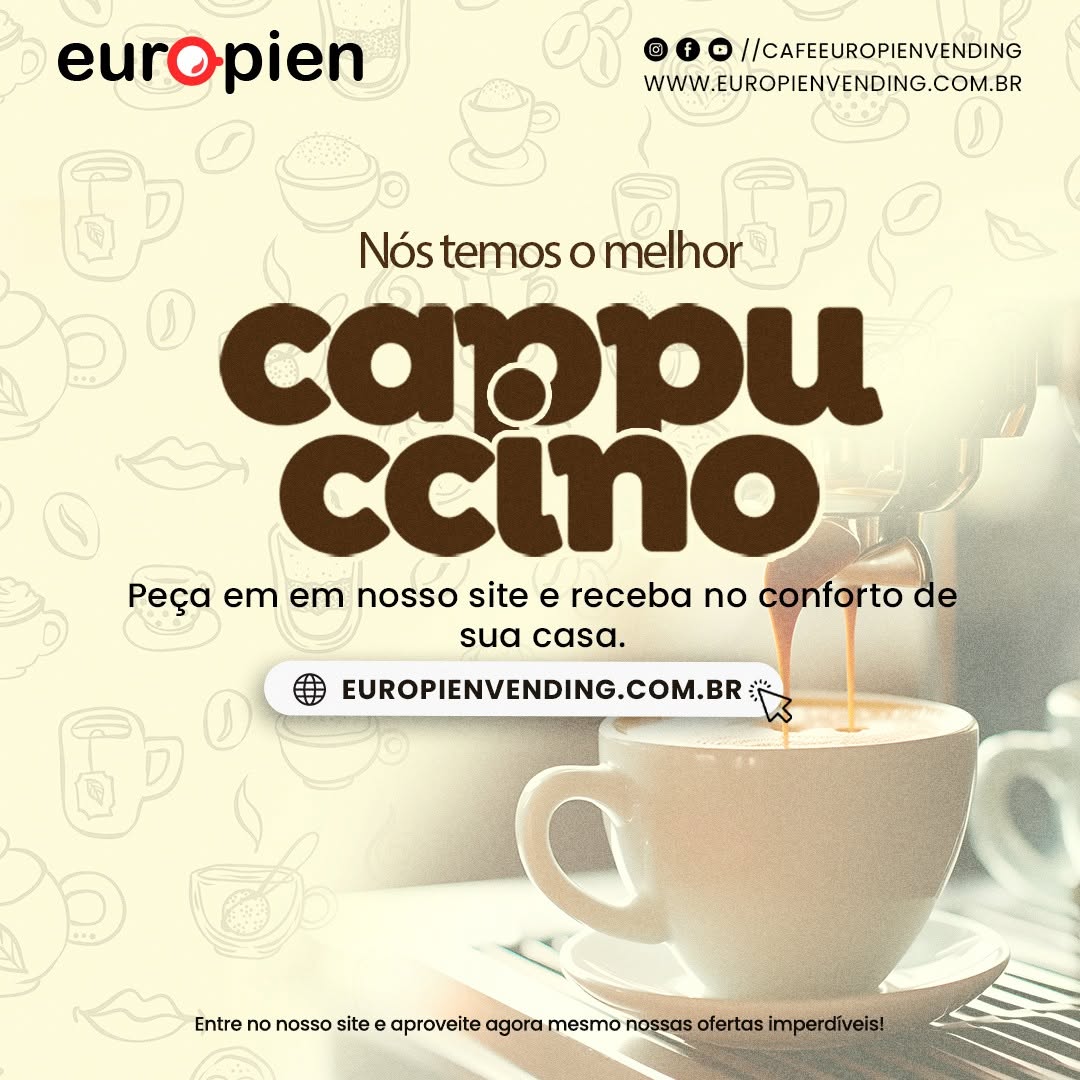 Na Europien, cada grão é escolhido com carinho para levar até você uma experiência única. Conheça nossos produtos e descubra como o café pode transformar pequenos momentos em grandes memórias. 🌟 Acesse nosso site e deixe o melhor do café fazer parte do seu dia! Para mais informações👇📞 Contato: Alice Rech📱 Telefone: (69) 9 9224-3288💻 Site: EuropienVending.com.br #EuropienVending#Sofisticação#Qualidade#Conveniência#coffeelife#coffeetime#espresso#coffeebreak#latteart